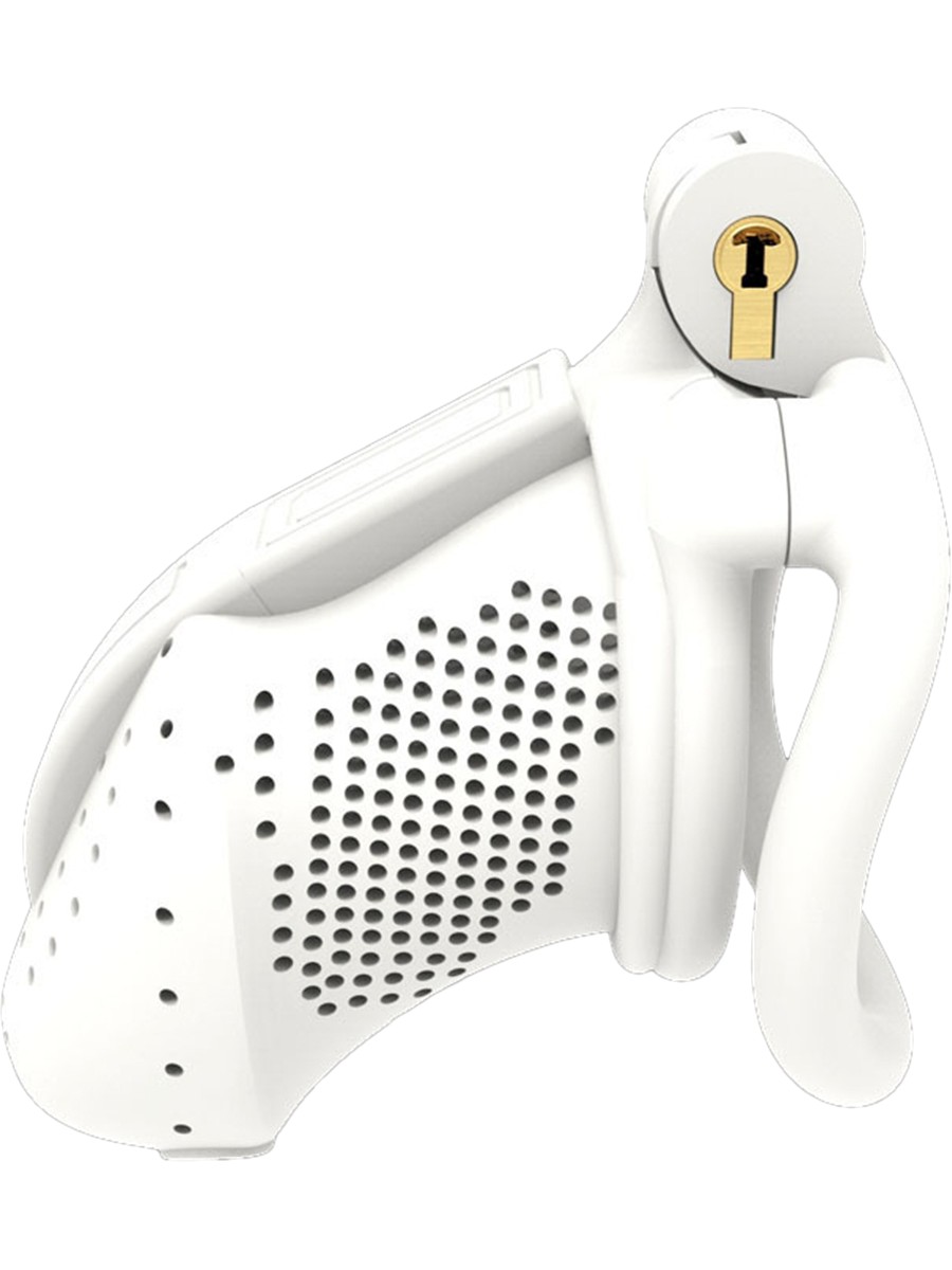 - Weisser Keuschheitskäfig mit mikroperforierter Struktur für Hygiene und Atmungsaktivität