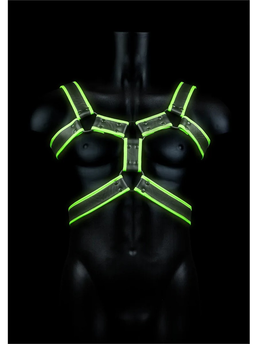 Das OUCH! Glow in the Dark Gurtzeug verbindet klassische Bondage-Ästhetik mit aufregendem Leuchteffekt. Die fluoreszierenden grünen Details sorgen im Dunkeln für besondere visuelle Reize und machen jede Session zu einem Highlight. Das Gurtzeug ist vollständig verstellbar und lässt sich an verschiedene Körpertypen anpassen. Für den Leuchteffekt sollte es vorher durch Sonnenlicht aktiviert werden.