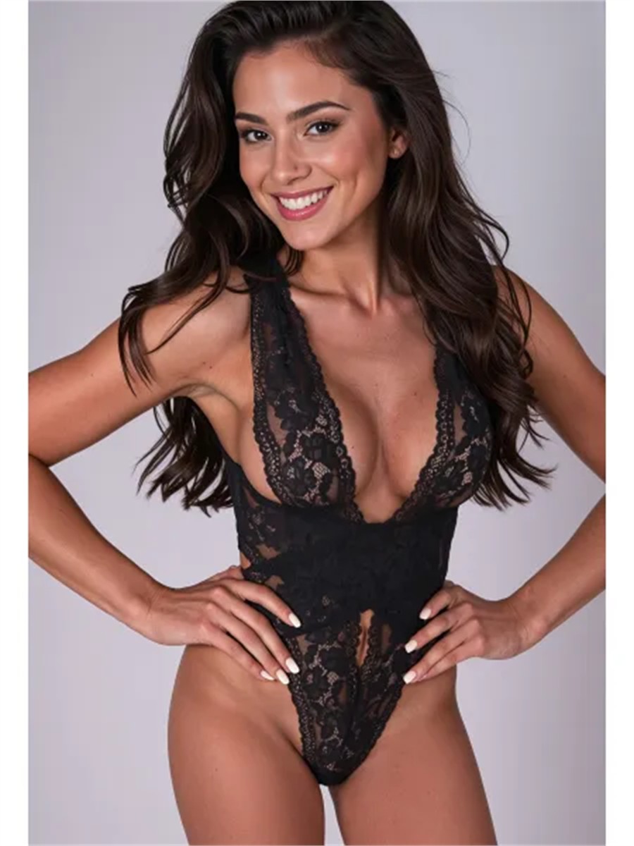Ein tief ausgeschnittenes Spitzen-Body aus vollst