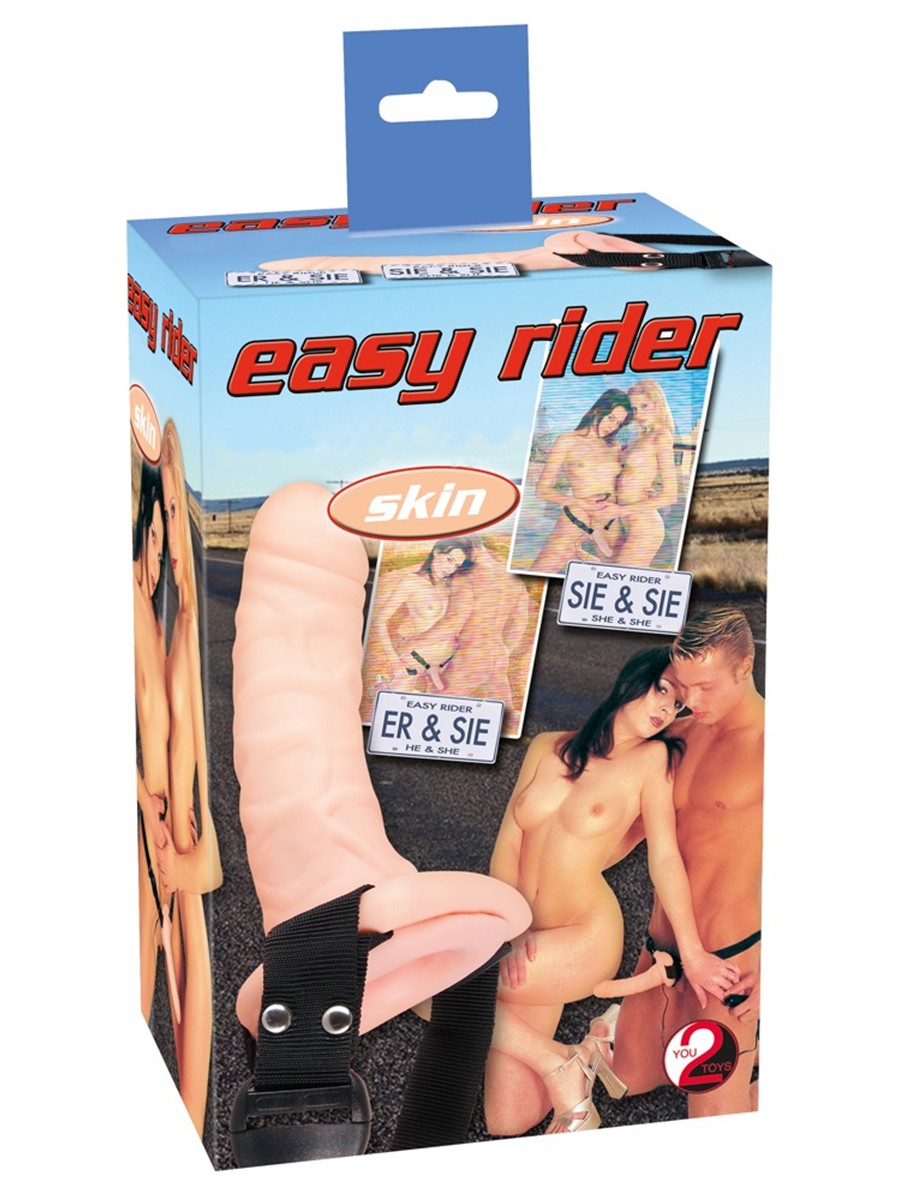 easy rider strap-on von You2Toys ist ein hohler Naturvibrator zum Umschnallen mit praller Eichel und feiner Äderung. Trägt ER für mehr Länge und Umfang - trägt SIE zum Verwöhnen von ihr/ihm. Der verstellbare Umschnallgurt hält den Lümmel fest und sicher am Platz. Die Eichel-Vibration ist mit der kabelgebundenen Fernbedienung stufenlos steuerbar (Multispeed).