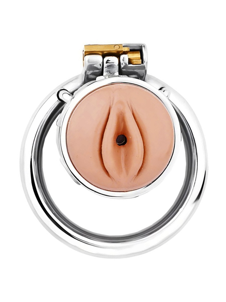 - Sehr kurzer Peniskäfig aus Metall mit Silikon-Vulva