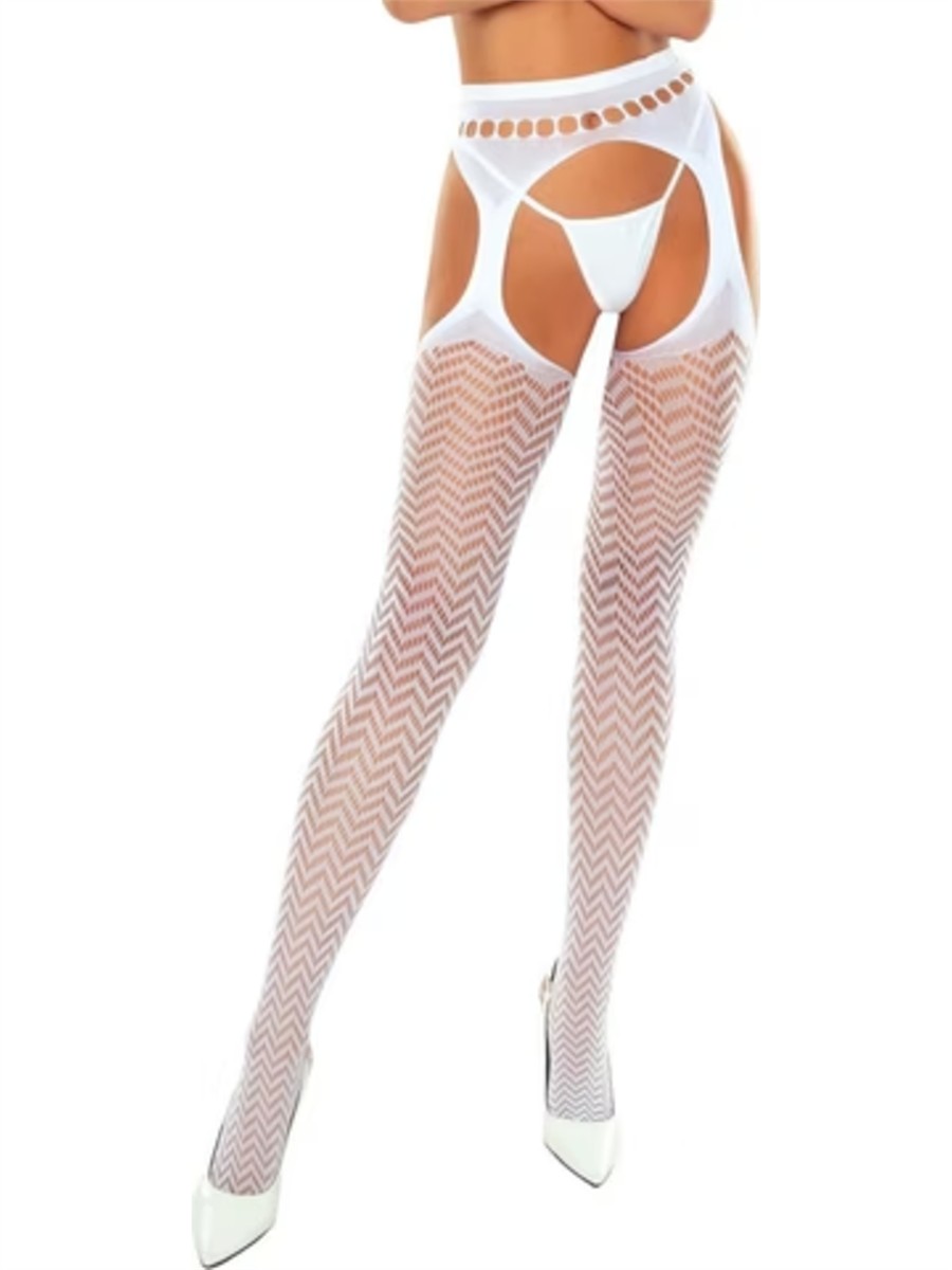 Die Strumpfhose S032 von Passion kombiniert eine raffinierte Optik mit funktionalem Design. Das markante Zickzack-Muster verleiht den Beinen eine optische Streckung und setzt einen modernen Akzent. Durch den integrierten Strapsgürtel-Look am Bund bleibt die Strumpfhose sicher in Position, während dekorative Ausschnitte die Taille betonen. Die offene Gestaltung im Schritt- und Gesässbereich sorgt für uneingeschränkte Flexibilität und macht das Ausziehen in intimen Momenten überflüssig. Dank des hohen Elastan-Anteils passt sich das Material geschmeidig der Körperform an und bietet einen hohen Tragekomfort über längere Zeit. Die hochwertige Verarbeitung aus europäischer Produktion garantiert zudem eine hohe Formbeständigkeit.