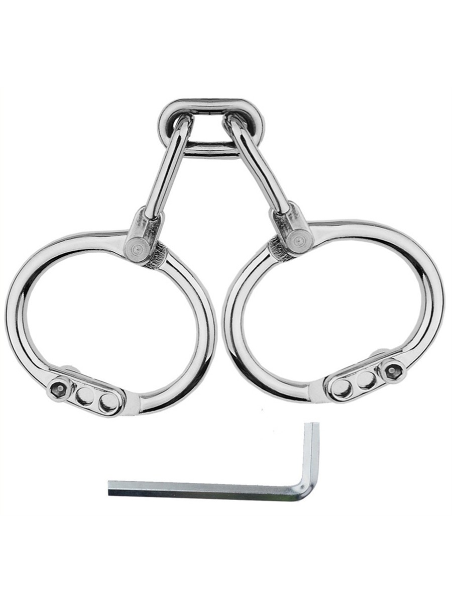 Die Metall-Handschellen Third Strict von KINK GEAR sind für eine sichere und restriktive Fixierung der Handgelenke konzipiert. Gefertigt aus massivem Edelstahl, zeichnen sie sich durch ihre Langlebigkeit und eine kühle, glatte Oberfläche aus. Die schmalen, ovalen Manschetten schmiegen sich eng an die Handgelenke an und bieten durch die anatomische Form einen festen Sitz. Ein wesentliches Sicherheitsmerkmal ist der Verschluss mittels Inbusschlüssel, der ein eigenständiges Befreien verhindert und somit den Fokus auf die Kontrolle und das Ausgeliefertsein legt. Die 10.0 cm lange Verbindungskette schränkt den Bewegungsspielraum effektiv ein, ohne dabei die Stabilität der Fesselung zu beeinträchtigen.