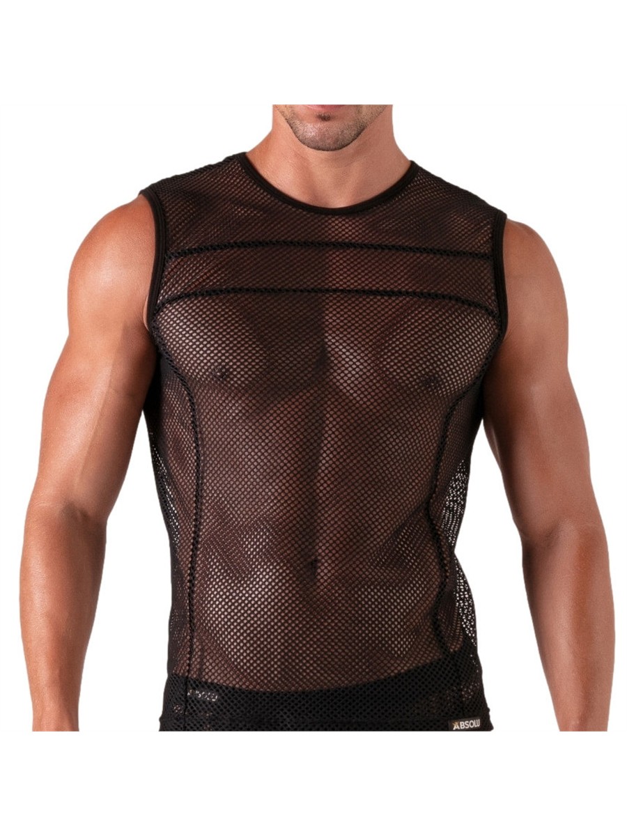 Das Tank Top Seduction von Absolu Male kombiniert maskulines Design mit einer reizvollen Transparenz. Gefertigt aus einem feinen Netzgewebe, gewährt das Oberteil Einblicke auf den Oberkörper und betont die männliche Anatomie. Die eingearbeiteten horizontalen Linien verleihen dem Kleidungsstück eine strukturierte Ästhetik und heben Brust- sowie Rückenpartie hervor. Dank der hochwertigen Materialmischung aus Baumwolle und Elastan bietet das Tank Top ein weiches Gefühl auf der Haut bei gleichzeitig optimaler Passform. Die Produktion in Frankreich unterstreicht den hohen Qualitätsanspruch an Verarbeitung und Langlebigkeit.