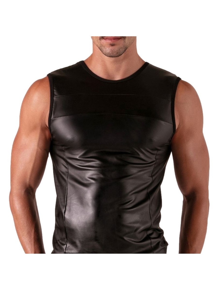 Das Tank Top Master von Absolu Male kombiniert eine markante Leder-Optik mit dem Tragekomfort moderner Funktionstextilien. Das elastische Material schmiegt sich eng an den Oberkörper an und betont die maskuline Silhouette. Durch die atmungsaktive und leichte Beschaffenheit bleibt das Oberteil auch bei intensiver Nutzung angenehm auf der Haut. Ein funktionales Detail ist die versteckte Innentasche, während der klassische Rundhalsausschnitt und die präzise Schnittführung für uneingeschränkte Bewegungsfreiheit sorgen. Die hochwertige Verarbeitung aus französischer Fertigung garantiert Langlebigkeit und eine beständige Passform im erotischen Kontext sowie bei Clubbesuchen.