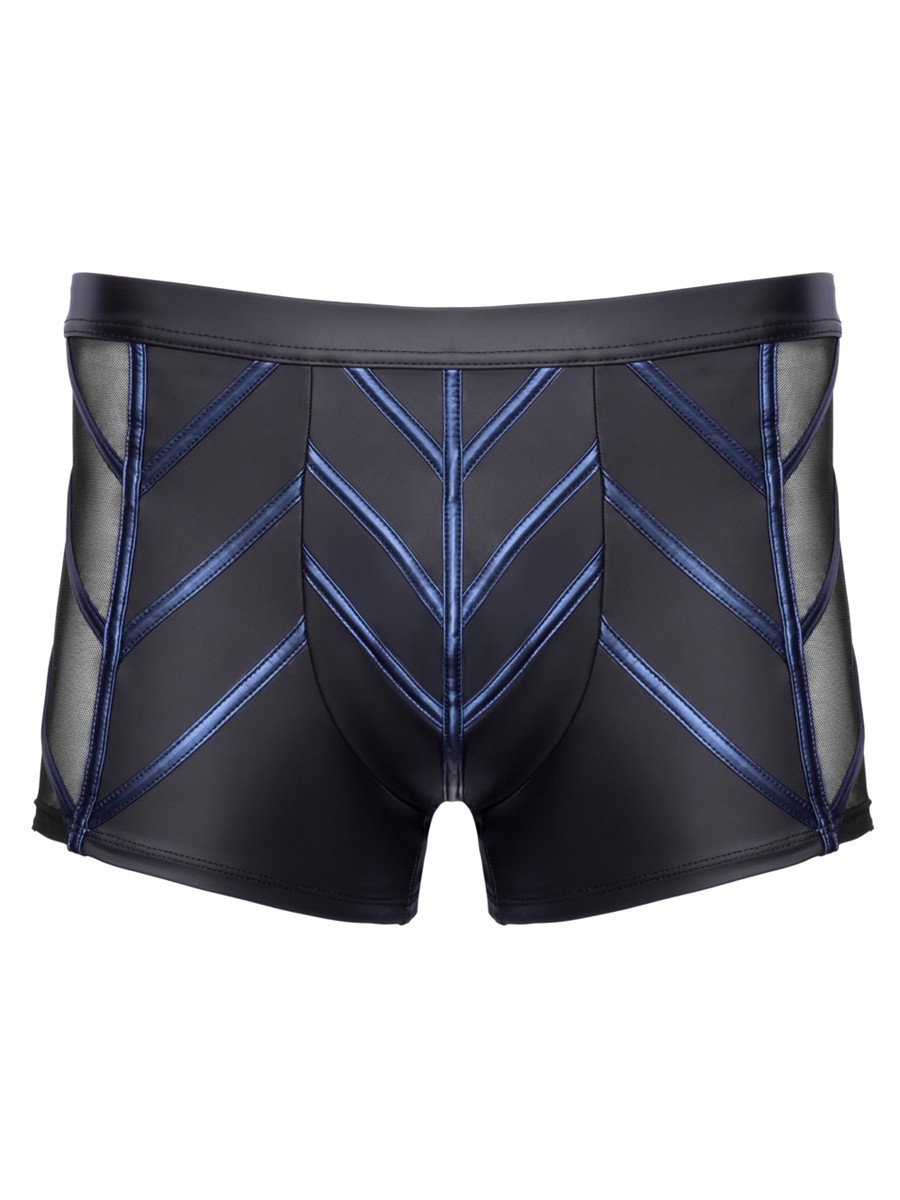 Betonende Pants von NEK im coolen schwarzen Mattlook. Vorne und seitlich mit aufgesetzten, rasanten Streifen im blauen Metallic-Mattlook. Jeweils seitlich zusätzlich ein schwarz-transparenter Netz-Einsatz. Mit bezogenem Bundgummi sowie rundum weich und elastisch für besten Tragekomfort.