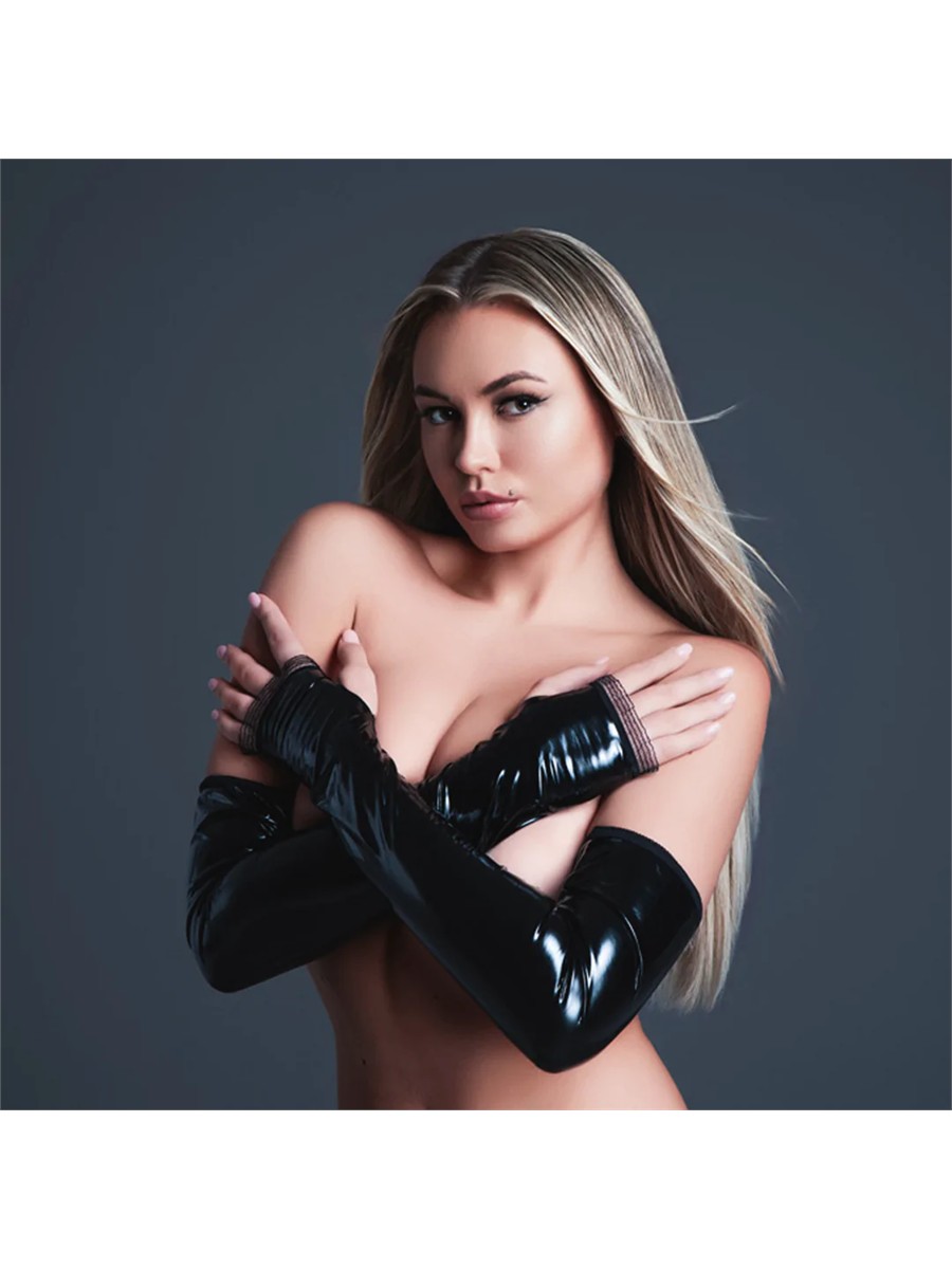 Diese fingerlosen Handschuhe setzen ein klares Statement. Die glatte Latex-Optik verleiht jedem Outfit einen auffälligen Touch, während das fingerlose Design volle Bewegungsfreiheit bietet. Ideal als Ergänzung zu Dessous oder als ausdrucksstarkes Detail für ein gewagtes Ensemble.