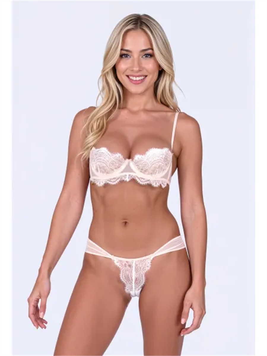 Ein romantisches Dessous-Set aus feiner, transparenter Spitze in einem zarten Ros