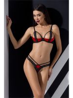 Die Vielzahl von Streifen auf dem „offenen BH BH und Strings machen das Set Malwia zu einem sehr verführerischen Angebot der Marke Passion. Dekorative goldene Druckknöpfe und Verbindungen machen es unmöglich, an einer solchen Kombination vorbeizugehen.
