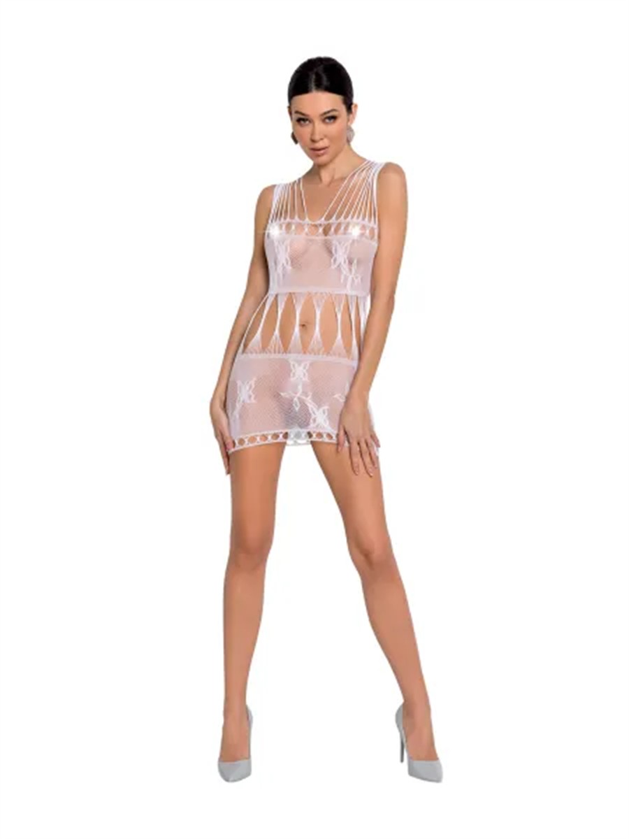 Dieses transparente Bodydress-Design kombiniert filigrane Muster mit zahlreichen Cut-outs und schmalen Trägern, die eine besonders sinnliche Silhouette entstehen lassen. Der elastische Stoff schmiegt sich weich an den Körper und bietet eine komfortable Einheitsgröße.