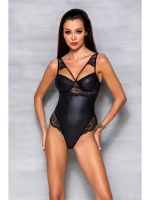 Ein zarter Body aus leicht transparentem Mesh in hellem Rosa, kombiniert mit floraler Spitze an Cups und H