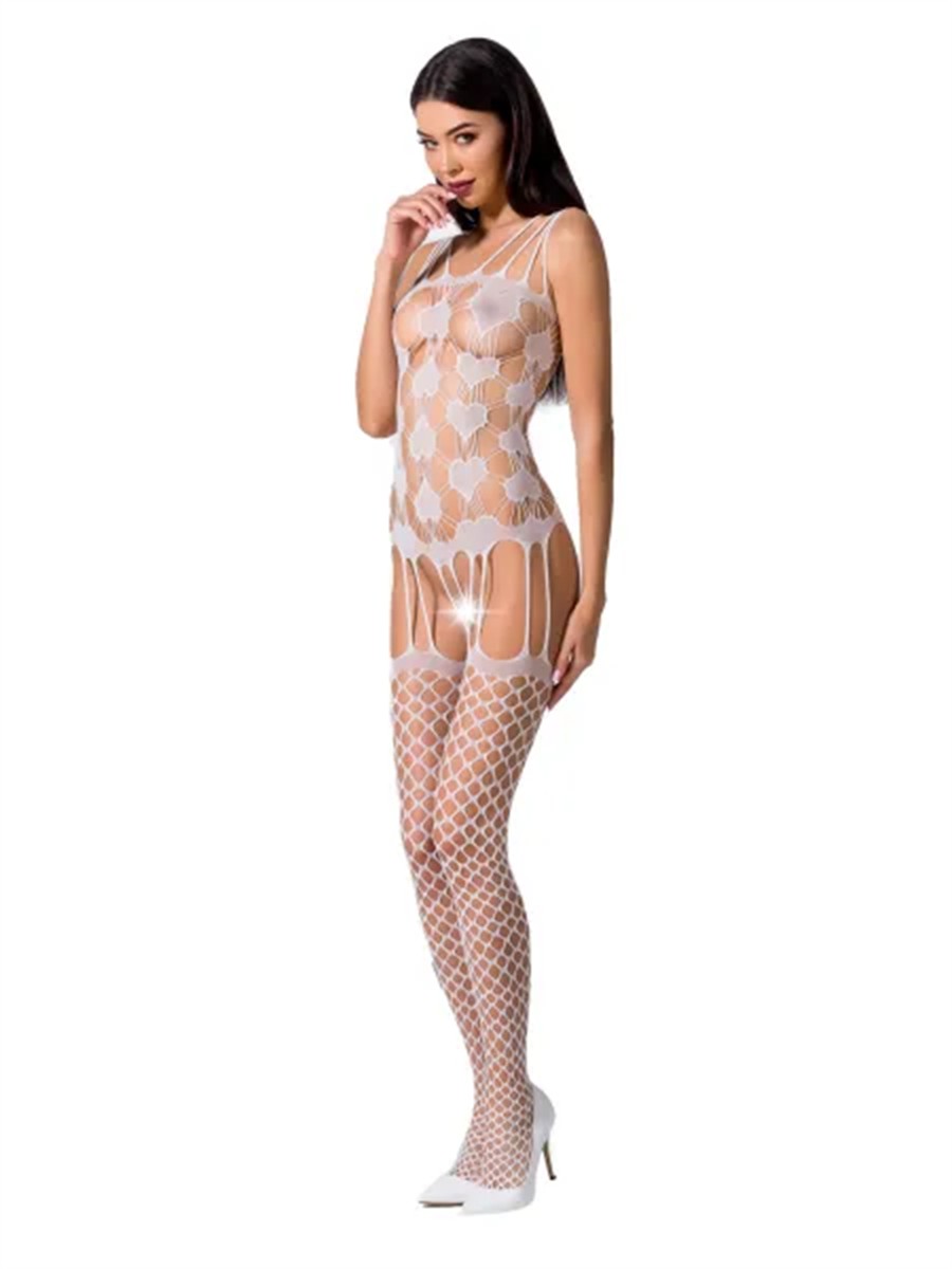Dieses verführerische Bodystocking verbindet großflächige Netzöffnungen mit einem raffinierten Strap-Design, das eine besonders erotische Optik erzeugt. Das elastische Material schmiegt sich an die Körperkonturen an und sorgt für eine betonte Silhouette. Die integrierte Strumpfoptik rundet den Look harmonisch ab.