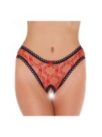 Aufreizende dünne Bänder schmücken die Hüften und warten darauf, gelöst zu werden. Die Vorderseite ist mit einer aufreizenden Ouvert-Spitze verziert, während der brasilianische Rücken mit einem Dreieck aus durchsichtigem Mesh gekrönt ist.