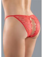 Eine Mischung aus durchsichtigem Mesh und Blumen-Spitze mit Picot-Besatz macht dieses Höschen mit Peekaboo-Ausschnitten vorne und hinten herrlich unanständig.