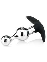 Kleiner Butt Plug aus Metall, mit einem zunächst schmalen, dann dicker werdendem Korpus. Kann einfach von der Basis abgeschraubt und durch einen anderen Plug ersetzt werden.