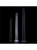 Der transparente Dildo ist ein Sextoy mit einer weichen Struktur und einer vollständig strukturierten Oberfläche wie Schuppen.