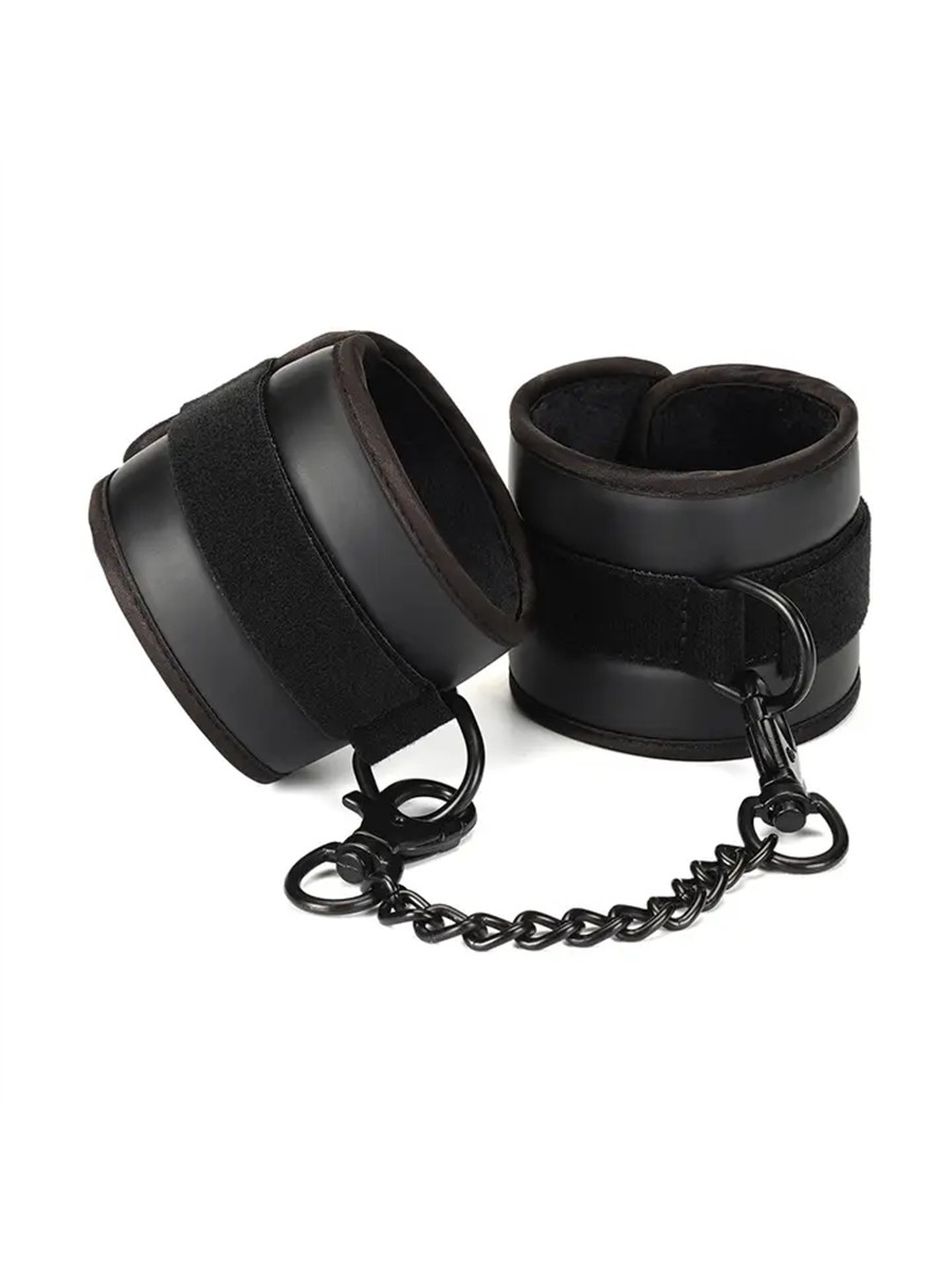 Diese veganen Handschellen in elegantem Schwarz sind für komfortables und kontrolliertes Bondage-Spiel konzipiert. Die weiche Polsterung und das samtige Futter sorgen für einen angenehmen Tragekomfort, auch bei längerem Gebrauch. Dank des Klettverschlusses lassen sich die Handschellen schnell anlegen, individuell anpassen und ebenso leicht wieder öffnen. Die Verbindungskette mit Clips ermöglicht einen flexiblen Einsatz.