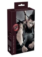 Set bestehend aus: Hand-/Fußfesseln Gesamtlänge 440 mm, Gurtlänge 440 mm, Gurtbreite 25 mm, Auflägefläche 350 mm x 60 mm; dazu im Pack zwei rote Lederbänder: Gesamtlänge 215 mm samt Karabinerhaken, Lederband alleine 120 mm x 25 mm. Hand- bzw. Fußfesseln Gesamtlänge 340 mm, Gurtlänge 335 mm, Gurtbreite 25 mm, Aufliegefläche 255 mm x 60 mm. Augenbinde Gesamtlänge 650 mm, Gurtlänge links 240 mm, rechts 160 mm, Aufliegefläche 235 mm x 70 mm. Mundknebel Gesamtlänge 640 mm, Gurtlänge links 310 mm x 25 mm, rechts 225 x 25 mm, Ball Ø 42 mm, Gurtbreite 25 mm. Leine 670 mm lang, Kettenlänge samt Karabiner 500 mm, Handschlaufe 150 x 25 mm. Halsband Gesamtlänge 510 mm, Gurtbreite 25 mm, Aufliegefläche 415 x 60 mm. Gesamtgewicht 966g.