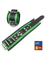 Schwarze, mit einer silbernen Kette verbundene Kunstlederhandschellen, die für Abwechslung... mehr