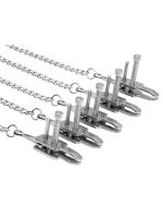 Tweezer Clamps sind im Millimeterbereich verstellbare Nippelklammern an einer Kette. Die gummierte Auflagefläche ist abnehmbar.