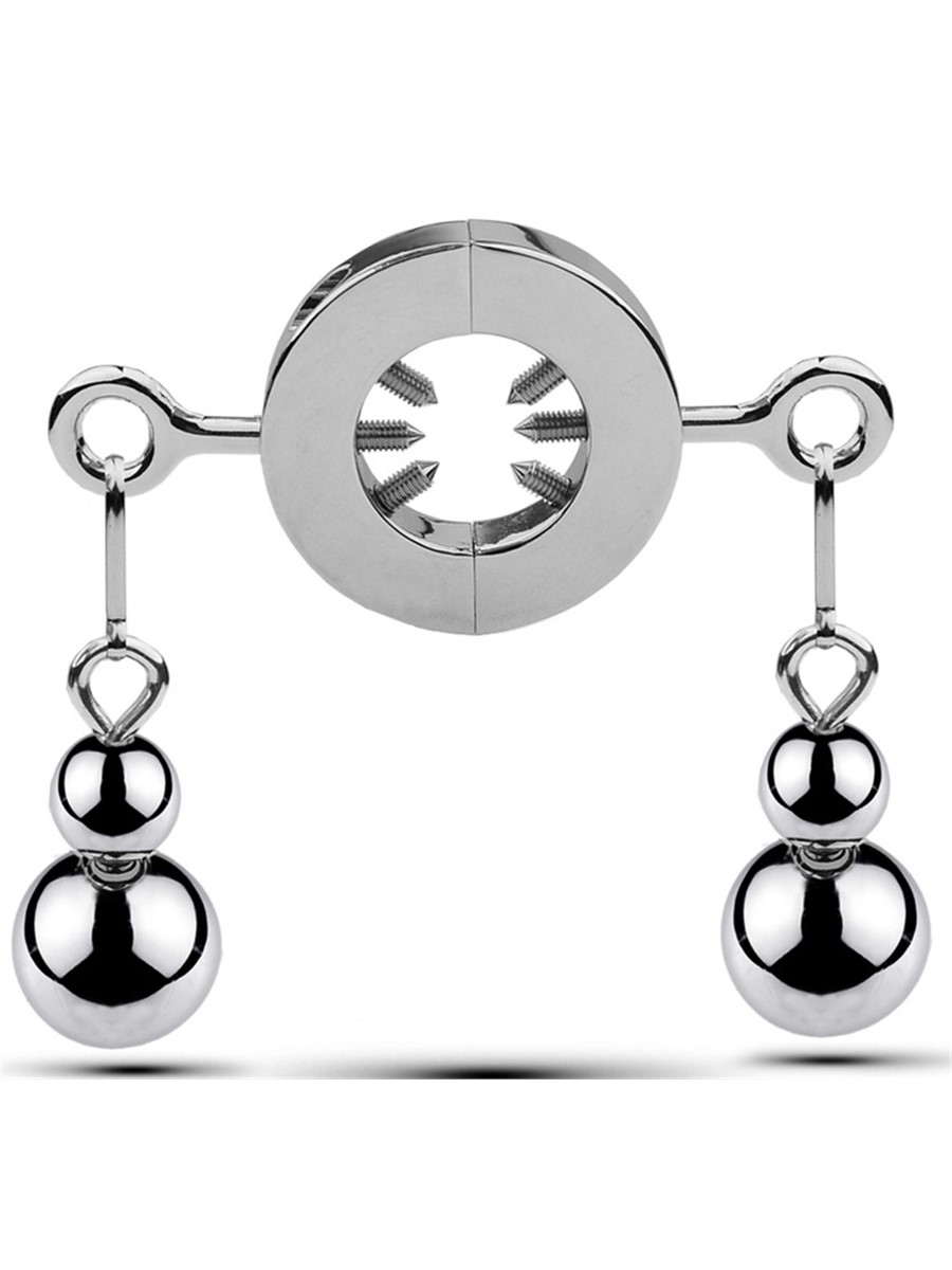 Verwenden Sie diesen Ballstretcher mit Spitzen und Gewichten, um sich selbst mit dem edlen Schmerz zu übertreffen und extreme SM-Erlebnisse zu haben.