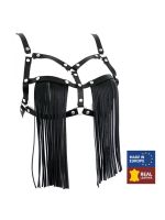 Sie haben eine spitze Form mit Lederbändern, die einen durchbrochenen Effekt erzeugen. Die Metallnieten sorgen für einen noch stärkeren SM-Stil.