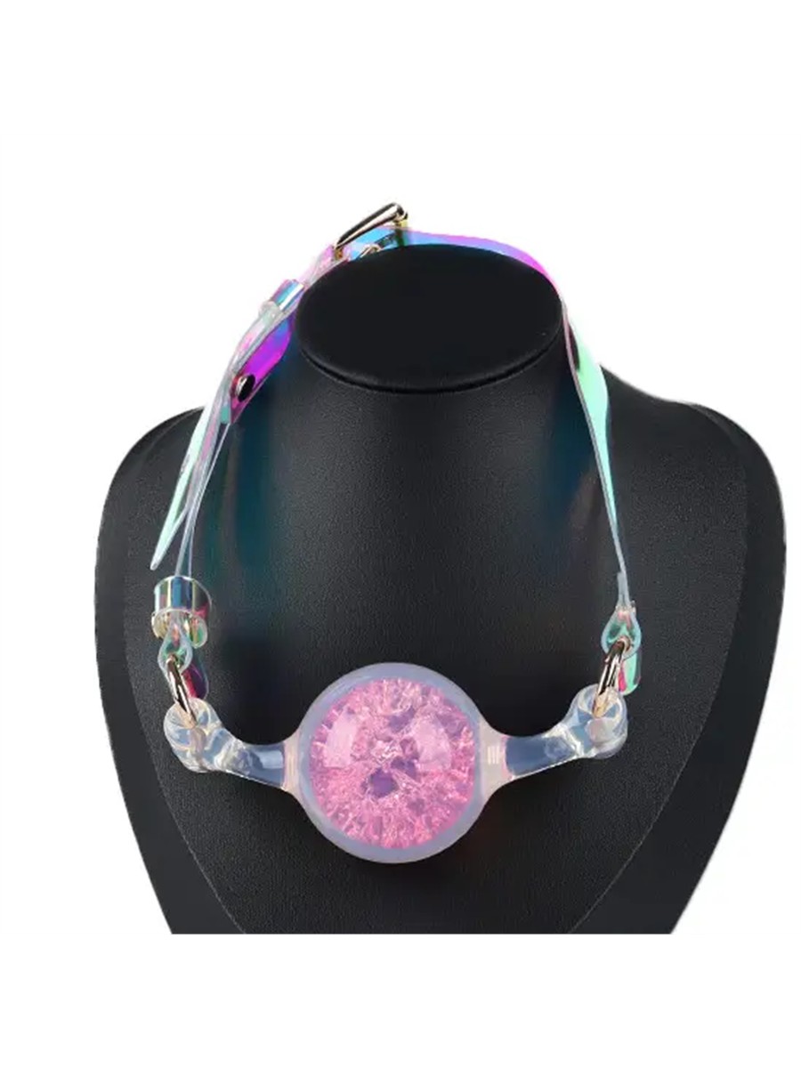 Knebel mit rosa Kristallkugel und transparentem Riemen