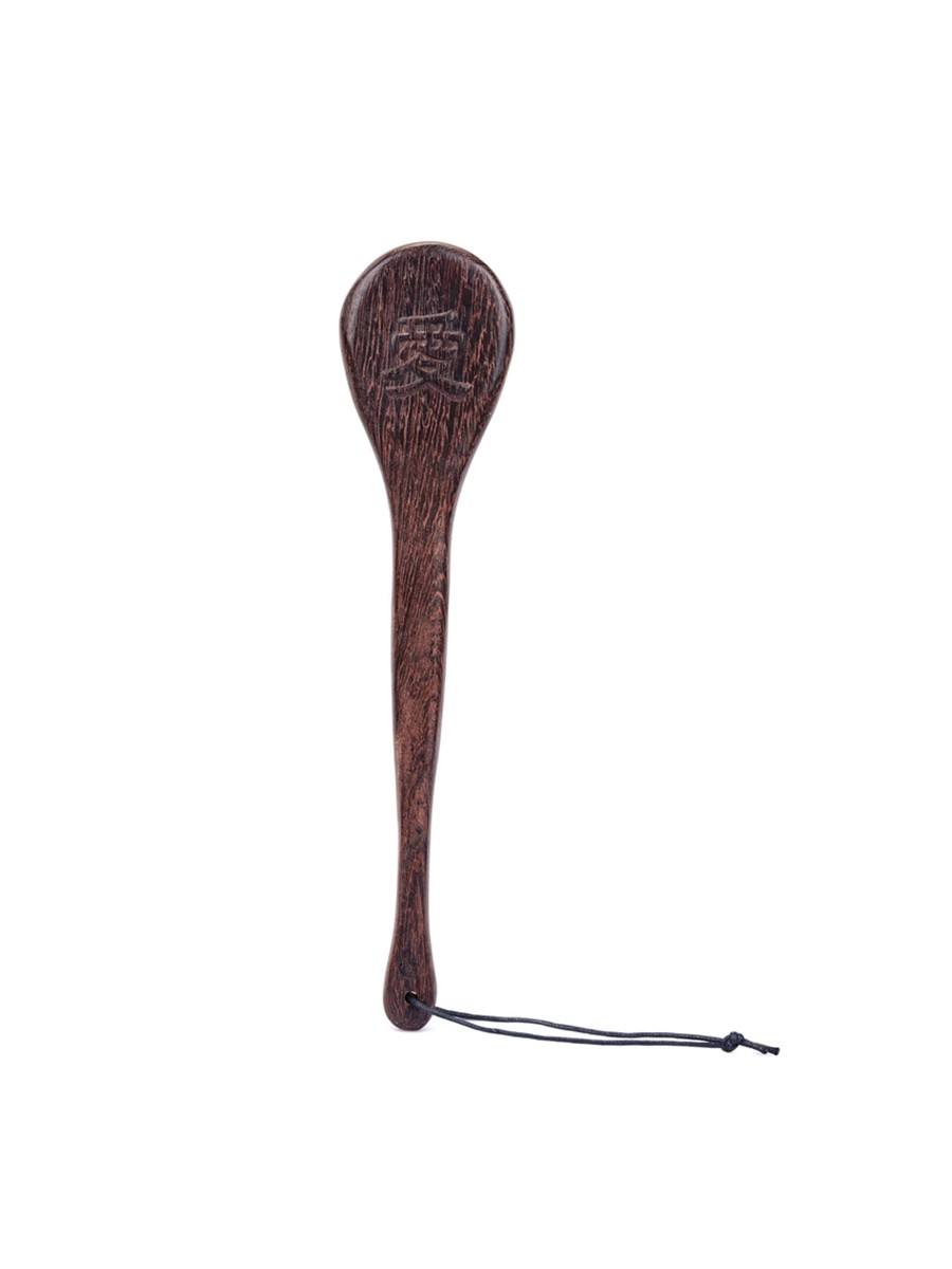Dieses hochwertige Schlagpaddel vereint präzise Handwerkskunst mit ausdrucksstarker Symbolik aus dem Osten. Jedes Stück ist aus massivem Wengeholz gefertigt und zeichnet sich durch individuelle Holzmaserung und erhabene, dreidimensionale Schriftzüge aus. Die strukturierte Seite mit den Symbolen sorgt für eine klare, intensive Wirkung und hinterlässt ein dekoratives Muster auf der Haut. Ein ästhetisches BDSM-Accessoire für kontrollierte Stimulation, das Design, Materialqualität und Bedeutung harmonisch miteinander verbindet.