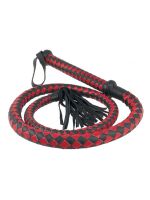 Diese Peitsche besteht aus einem Holzgriff, der mit echtem handgeflochtenem Rindsleder umwickelt ist, und einem Satz von neun Schwänzen, die einzeln mit einem doppelten Schnurende pro Schwanz geflochten sind. Der Flogger hat eine Gesamtlänge von 93 cm. Der Griff ist 23 cm lang und die Handschlaufe hat einen Durchmesser von 13 cm.