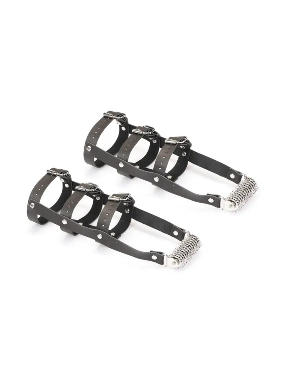Diese Bondage-Fuss-Harness "High Heel" sind aus robusten Lederriemen gefertigt und mit einem integrierten Rollmechanismus ausgestattet. Drei verstellbare Lederriemen sorgen für einen festen Sitz und können individuell angepasst werden. Anstelle des klassischen Absatzes ist ein Metallrad angebracht, das das Stehen und Gehen bewusst erschwert. Die Verarbeitung ist gut und funktional.